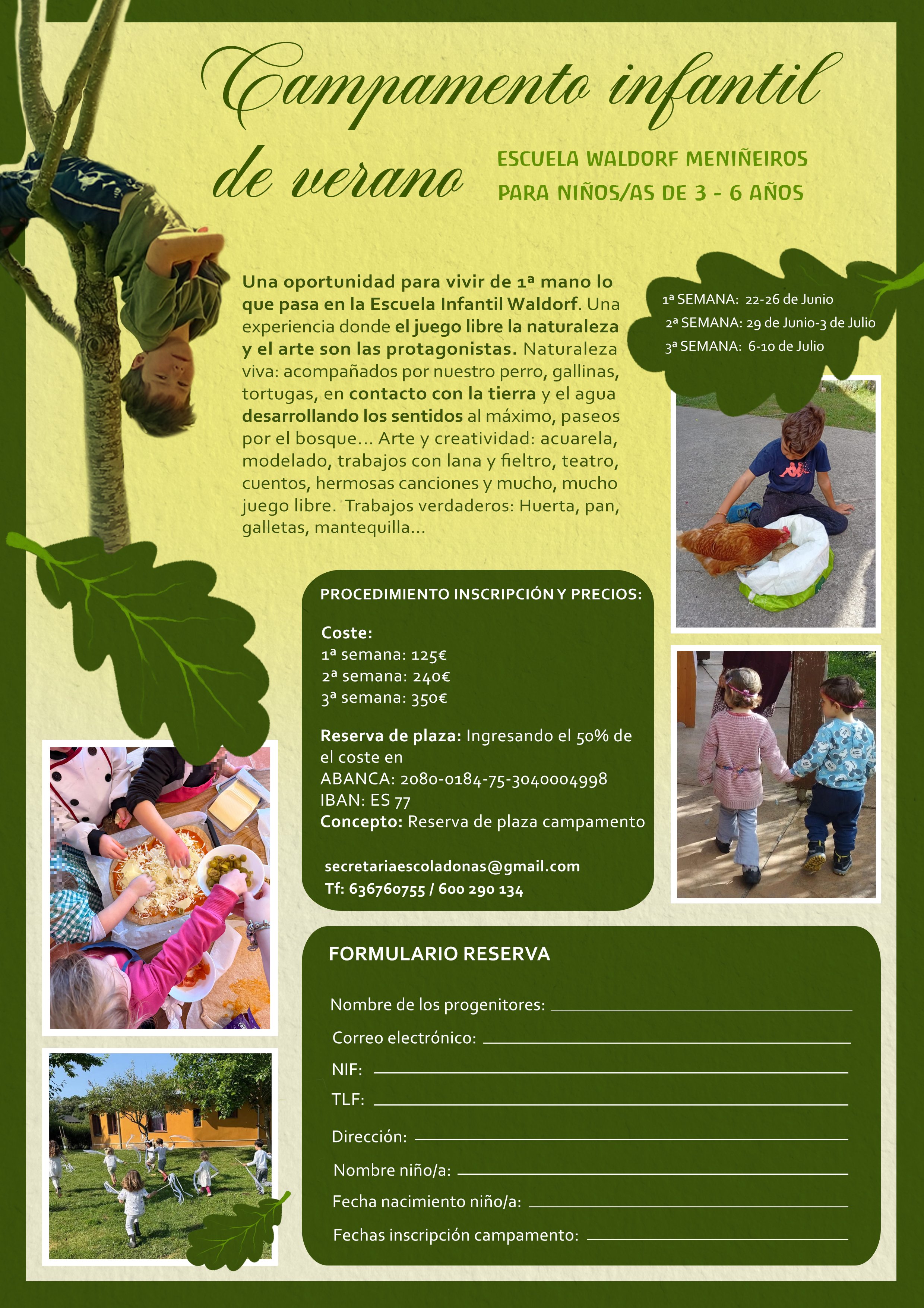 Campamento de Verano Infantil Una oportunidad de vivir en 1ª mano lo que pasa en la Escuela Infantil Waldorf Reserva tu plaza Reserva tu plaza