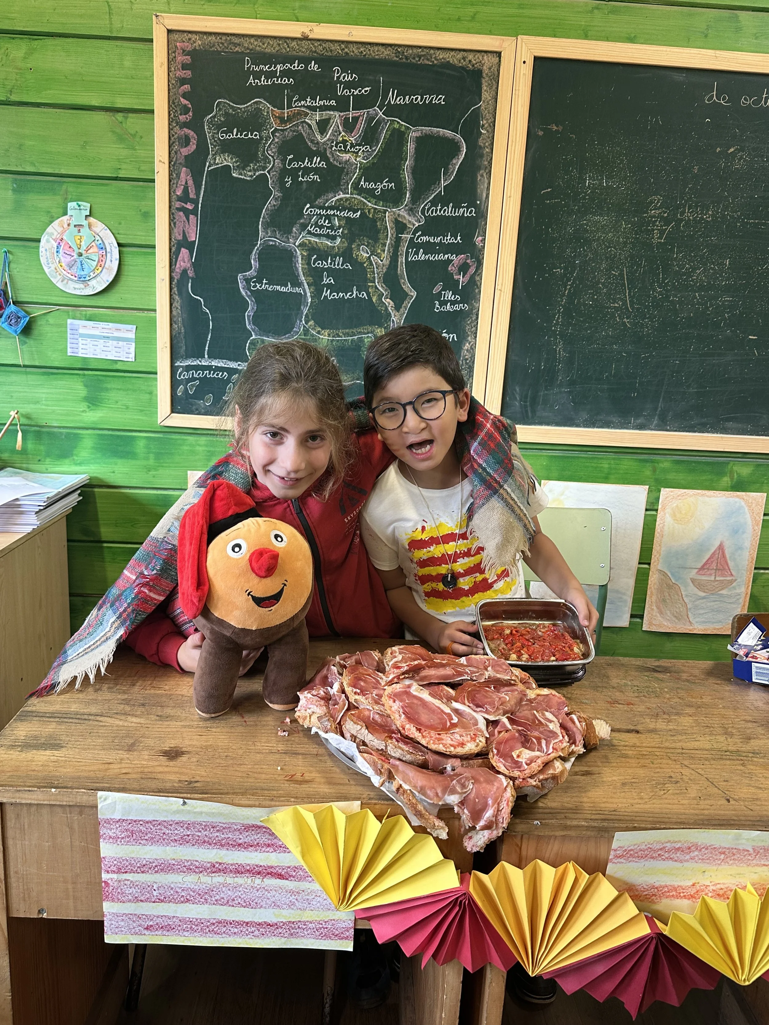 Durante varias semanas, cada uno de los niños y niñas investigó una comunidad autónoma de España. Prepararon con mucha ilusión sus presentaciones y, sobre todo, trajeron comida típica de cada lugar, que se convirtió en la gran estrella de la jornada. A través de los sabores pudimos “viajar” por todo el país, descubriendo la diversidad y la riqueza culturales de cada comunidad.